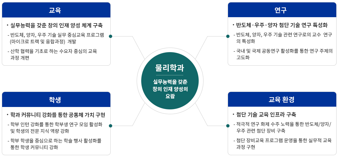 - 첨단 과학기술 산업을 선도할 실무 중심의 물리학 인재 양성